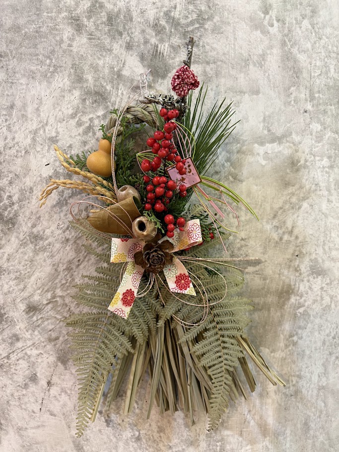 そして店の定期講座の教室のしめ飾りとアレンジメント