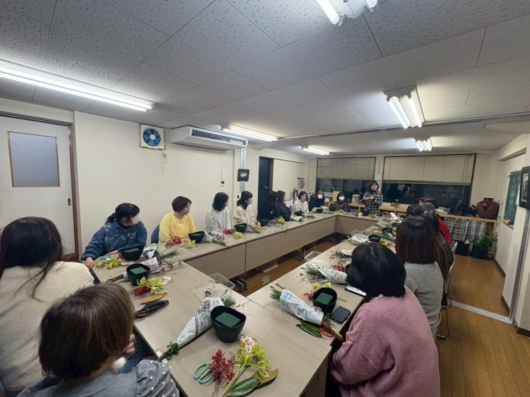 まずはお正月しめ飾りとアレンジメントのワークショップ