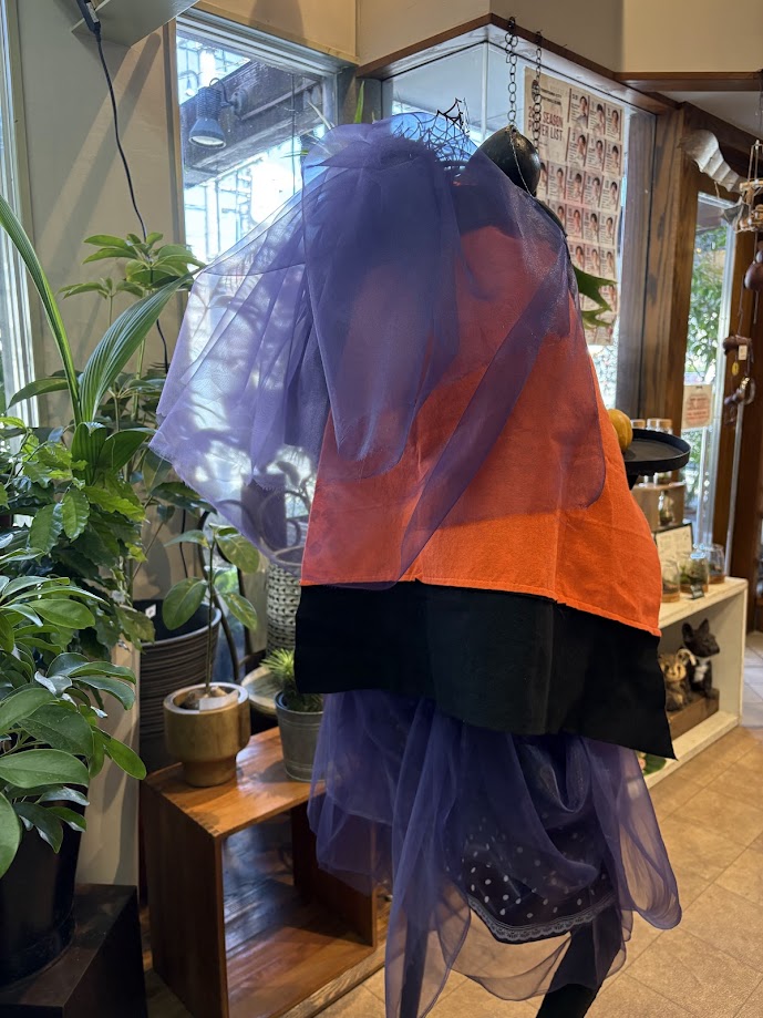 ハロウィンカラーはカボチャをイメージするオレンジ(太陽の恵み)、魔女、黒猫、カラス、蝙蝠、くもをイメージする黒(死、恐怖)、月明かりの怪しい夜の空の紫。どれもおどろおどろしいものばかりですね。悪霊やゾンビの世界は苦手なんですが、私はティム・バートンの映画「The Nightmare Befoore Chrisutmas」の世界観がとても好きでキャラクターが着ている洋服が大好き。