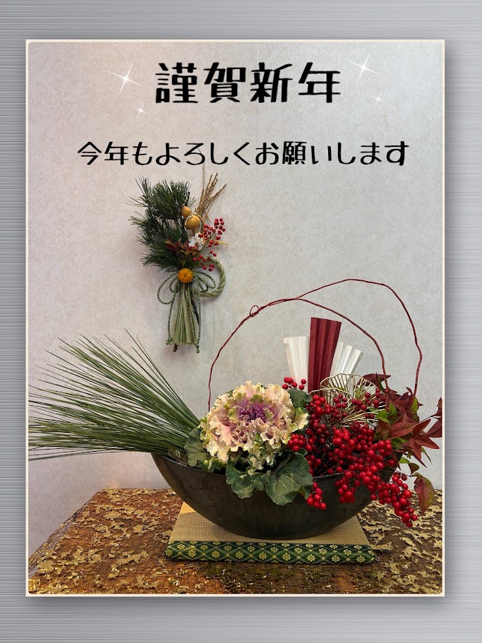 年末にしたお正月アレンジとしめ飾りで年賀状を作りました。
