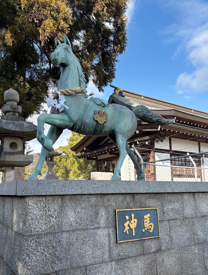 次の日は寄島にある大浦神社に初もうで。ここには馬の銅像があって午年の今年はいつもより参拝される方が多かったようです。